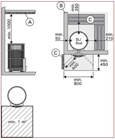 Piec na drewno Harvia Legend 300 DUOBezpieczne odległości dla pieca LegendOsłons stalowa dostępna w opcjiKomin stalowy odpowiedni do pieców opalanych drewnemDrzwi do sauny zaprojektowane w konwencji LegendKosz na kamienie dostępny w opcjiLampa zaprojektowana w konwencji pieców LegendPojemnik na wodę na rurze dymowejPrzejście przez ścianęWidok od strony saunyWidok od strony pokoju