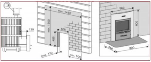 Średnica rury dymowej: 115 mm. Wyjście rury: do góry