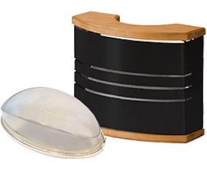 Lampa jest utrzymana w linii zaprojektowanej do pieców do sauny Legend, ale pasuje również do kabin o innym plastycznym wystroju. Składa się z oprawy lampy oraz z osłony lampy. Osłona lampy jest wykonana z drewna i w części frontowej malowana na czarno. W ofercie jest również osłona lampy z metalową blachą nierdzewną w miejscu malowanej na czarno sklejki.