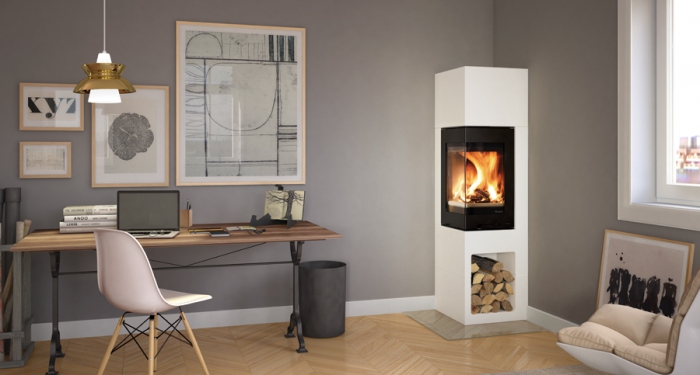 Kominek ODENSE można ustawić albo jako kominek przy ścianie, albo w narożniku, albo jako kominek wolnostojący, na środku pokoju.