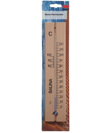 Termometr spirytusowy do sauny. Zakres pomiaru temperatury: 0 - 125 stopni C.