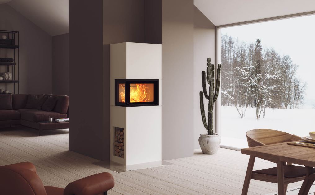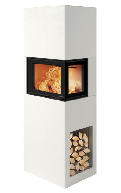 Nordpeis Pisa to prosty i stylowy kominek, z widokiem na ogień z dwóch stron i ozdobnym magazynem drewna opałowego. Jest również możliwość wybrania dodatkowego magazynu drewna opałowego z boku. Model Pisa zawiera zintegrowaną zaporę ogniową, która pozwala na umieszczenie go bezpośrednio przy dowolnej ścianie – nawet jeśli jest łatwopalna.