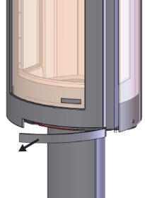 Uwaga: schematyczne rysunki obrazują mechanizm otwierania drzwiczek i sposób doprowadzenia powietrza, ale nie odwzorowują dokładnie samego pieca.