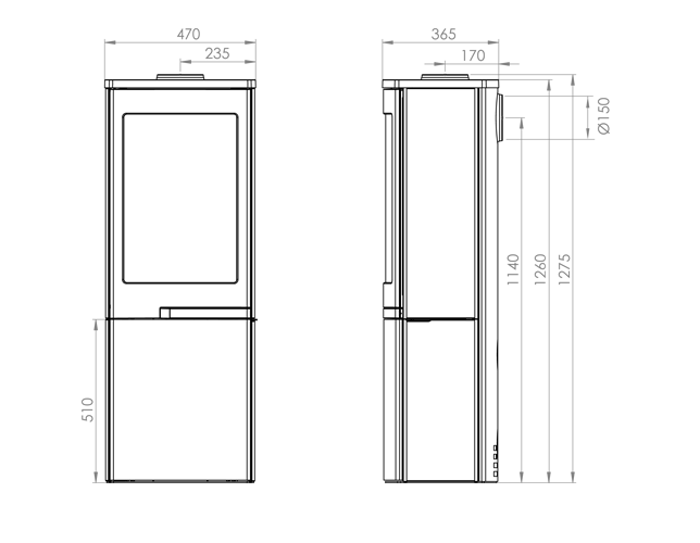 * piec stalowo żeliwny z żaroodpornymi szybami, z systemem wtórnego spalania